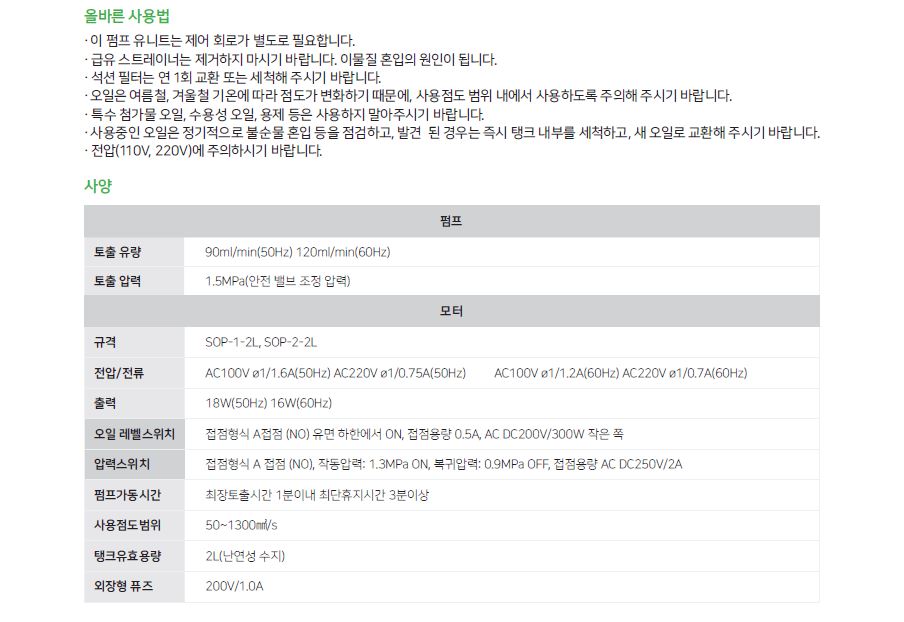 전동식 간헐 토출형 기어 펌프 SOP-2L형